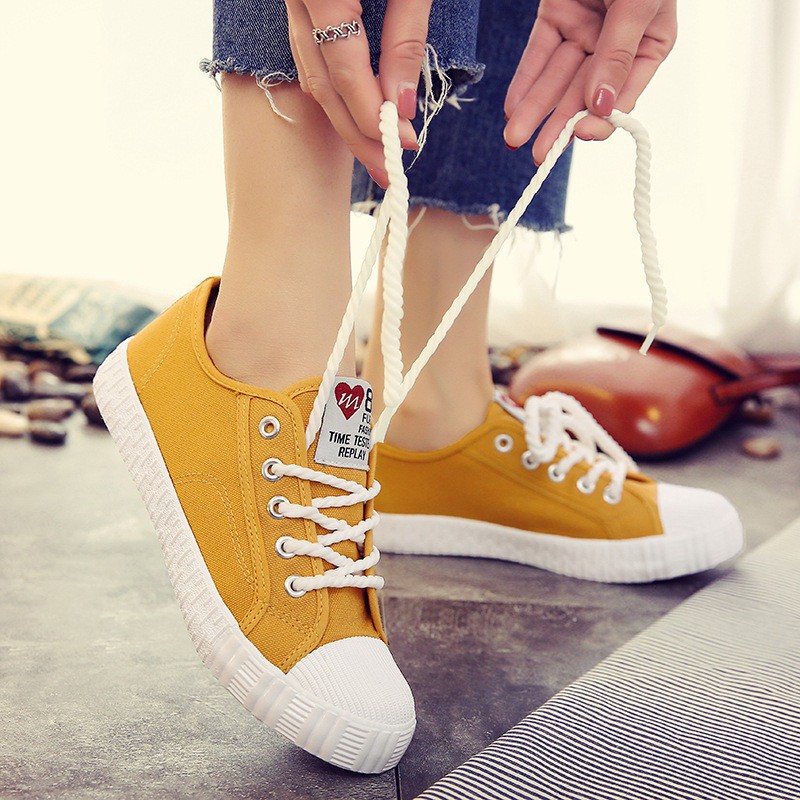 Bayar Di Tempat Sepatu Sneakers Flat Lace Up Bahan Kanvas Casual Kuning